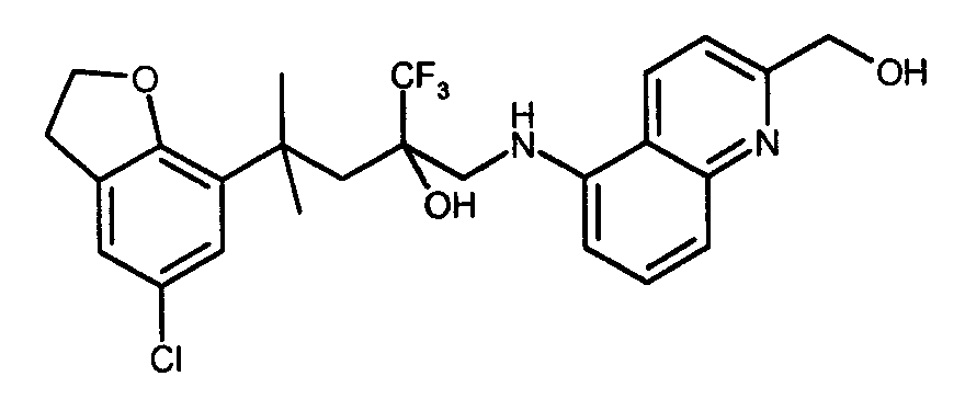 - ZGMRHDZDANMFGN-UHFFFAOYSA-N OCc(cc1)nc2c1c(NCC(CC1(CC1)c(cc(cc1)F)c1O)(C(F)(F)F)O)ccc2 Chemical compound OCc(cc1)nc2c1c(NCC(CC1(CC1)c(cc(cc1)F)c1O)(C(F)(F)F)O)ccc2 ZGMRHDZDANMFGN-UHFFFAOYSA-N 0.000 description 1