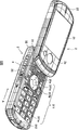 한편, 최근의 이동 가능하고 휴대성이 풍부한 전화기 중에는, 표시 화면의 대형화에 따라, 표시부와 키 입력부를 각각 별도의 하우징에 배치한 것이 많아지고 있다. 이러한 종류의 전화기는 일반적으로, 2개의 하우징이 접힘으로써 서로 겹쳐져 키 입력부가 하우징의 안쪽으로 숨겨진 상태(닫힌 상태)나, 또는, 키 입력부 및 표시부가 함께 노출되는 상태(열린 상태)로 사용된다.On the other hand, in recent years, the mobile phone which is rich in portability has arrange | positioned the display part and the key input part in separate housings, respectively, with the enlargement of a display screen. This type of telephone is generally used in a state where the two housings are folded and overlapped with each other so that the key input portion is hidden inside the housing (closed state) or the key input portion and the display portion are exposed together (open state).