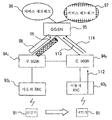 GGSN(95)은 2개의 서비스 네트워크(96, 97)에 접속된, 이동 통신 시스템과 서비스 네트워크들(96, 97) 사이의 게이트웨이 장치이다. 서비스 네트워크들(96, 97)은 패킷 서비스를 제공하는 네트워크이다.The GGSN 95 is a gateway device between the mobile communication system and the