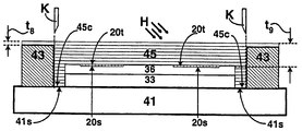도 45는 본 발명에 따른 광학적으로 투명한 벨트 재료, 유연성 매체 및 임프린트 스탬프를 통한 광중합체 재료의 조사를 도시한 단면도,45 is a cross-sectional view showing irradiation of an optically transparent belt material, a flexible medium and a photopolymer material in accordance with the present invention;