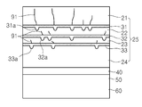 실시예에서는 상기 GaN층들(21,22,23,24)과 InGaN층들(31,332,33)을 교대로 적층함으로써 디스로케이션(91)의 전파를 방지할 수 있으며, 상기 제1 도전형의 반도체층(25) 상에 배치되는 반도체층들의 품질을 향상시킬 수 있다.In an embodiment, propagation of the