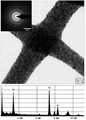 6 is a transmission electron micrograph, a diffraction pattern, and an energy dispersive X-ray spectroscopy (EDS) spectrum of the nanowires included in the conductive layer of FIG. 5.