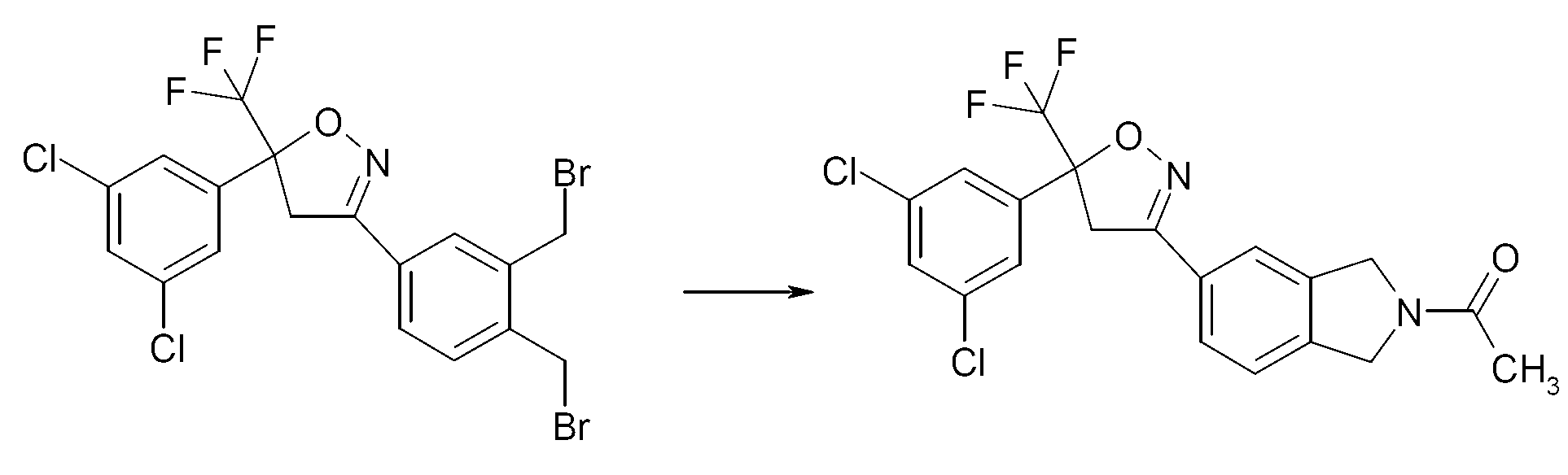 - NHYVAVPSQUHWOO-UHFFFAOYSA-N FC(C(C1)(c2cc(Cl)cc(Cl)c2)ON=C1c1ccc(CBr)c(CBr)c1)(F)F Chemical compound FC(C(C1)(c2cc(Cl)cc(Cl)c2)ON=C1c1ccc(CBr)c(CBr)c1)(F)F NHYVAVPSQUHWOO-UHFFFAOYSA-N 0.000 description 1