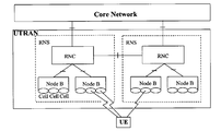 도 1은 종래 및 본 발명이 적용되는 UMTS(Universal Mobile Telecommunications System)의 망구조를 나타낸 그림이다. UMTS시스템은 크게 단말(User Equipment; UE라 약칭함)과 UTMS무선접속망(UMTS Terrestrial Radio Access Network; 이하 UTRAN라 약칭함) 및 핵심망(Core Network; 이하 CN이라 약칭 함)으로 이루어져 있다. UTRAN은 한 개 이상의 무선망부시스템(Radio Network Sub-systems; 이하 RNS라 약칭함)으로 구성되며, 각 RNS는 하나의 무선망제어기(Radio Network Controller; 이하 RNC라 약칭함)와 이 RNC에 의해서 관리되는 하나 이상의 기지국(이하 Node B)으로 구성된다. 하나의 Node B에는 하나이상의 셀(Cell)이 존재한다.1 is a diagram illustrating a network structure of a UMTS (Universal Mobile Telecommunications System) according to the related art and the present invention. The UMTS system is largely composed of User Equipment (UE), UMTS Terrestrial Radio Access Network (UTRAN) and Core Network (CN). The UTRAN is composed of one or more radio network sub-systems (hereinafter abbreviated as RNS), and each RNS includes one radio network controller (RNC) (Hereinafter referred to as " Node B "). One Node B has one or more cells.