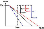 구동 TFT의 특성은 서로 다른 전압에 따른 화소의 전류를 측정하면 되지만 AMOLED 표시 장치가 대면적화 될수록 많은 화소의 전류를 고속으로 측정하는 것이 어려운 문제점이 있다. 예를 들면, 미국특허 US 7,834,825에서는 1개의 화소씩 점등하여 OLED 패널의 전원 라인(VDD 또는 VSS 라인)으로 흐르는 전류를 측정하는 방법을 개시하고 있으나, 해상도가 올라가면서 전원 라인에 병렬로 존재하는 기생 커패시터 때문에 전류 측정 시간이 지연됨으로써 고속 측정이 어려운 문제점이 있다. The characteristics of the driving TFT can be measured by measuring the current of the pixel according to different voltages. However, it is difficult to measure the current of many pixels at high speed as the size of the AMOLED display becomes larger. For example, U.S. Patent No. 7,834,825 discloses a method of measuring a current flowing through a power supply line (VDD or VSS line) of an OLED panel by lighting one pixel at a time. However, since a parasitic The current measurement time is delayed due to the capacitor, which makes it difficult to measure at high speed.