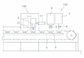 취사구간에서는 가열장치(120)에 의해 취사에 필요한 열이 공급된다. 즉, 컨베이어(2)의 내부에는 설치대(4)가 설치되고, 이에 다수 개의 버너(5)가 설치되어 열을 공급하게 된다. 따라서 취사구간에서 완전히 밥이 될 수 있도록 버너(5)의 열량을 조절하거나, 컨베이어(2)의 속도를 조절하거나, 취사구간의 길이를 조절하는 등 다양한 조절에 의해 최종적인 누룽지(13)의 맛이 좋도록 조절될 수 있다. In the cooking section, heat necessary for cooking is supplied by the