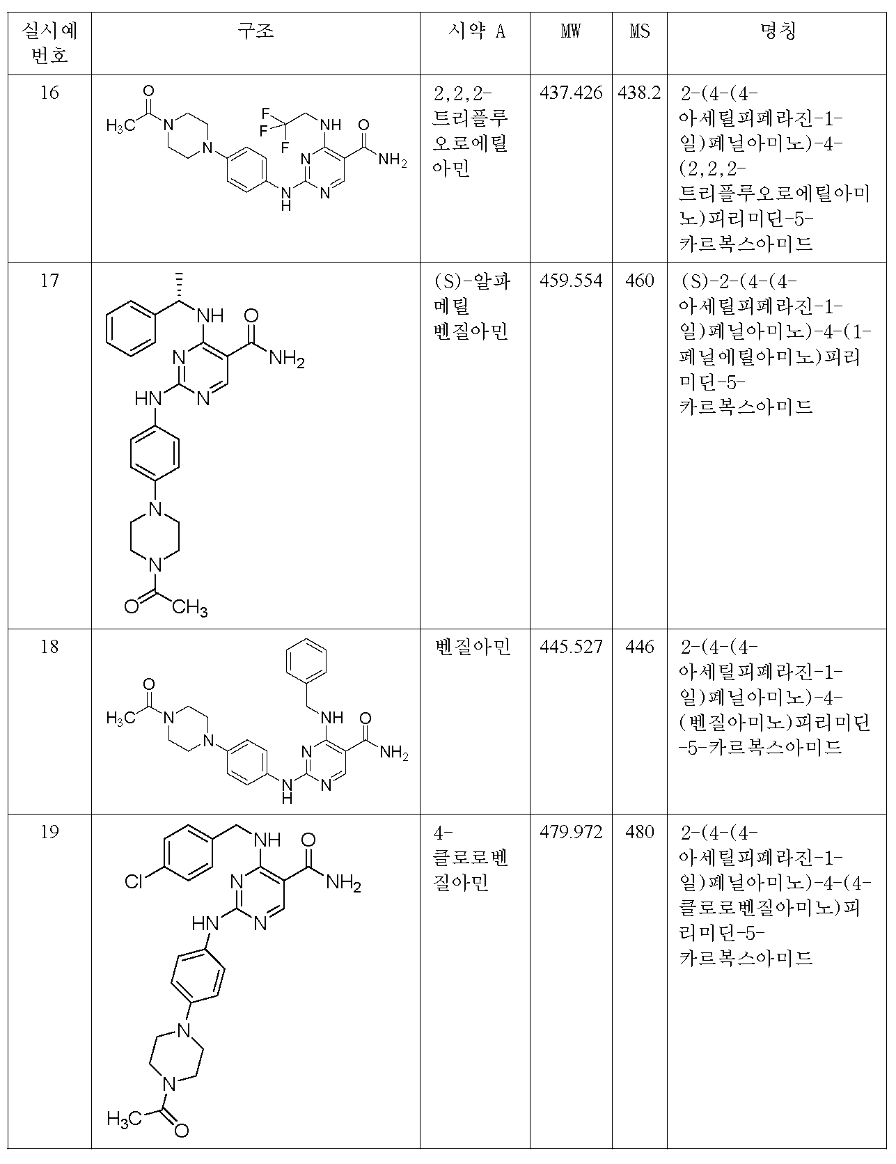 이들 실시예에서 본 발명의 화합물의 시험관내 및 생체내 인간 JAK 키나제 활성을 평가하는 방법을 설명하였으며, 이는 인간 혈장 JAK 키나제의 활성을 억제하는 그의 능력을 시험하는 것과 같이 당업계에 공지된 다양한 절차에 의해 결정할 수 있었다. 본 발명의 화합물에 의해 나타나는 인간 JAK 키나제 억제에 대한 강력한 친화도를 IC50 값 (nM)으로 측정할 수 있었다. IC50 값은 인간 JAK 키나제 활성의 50% 억제를 제공하는데 요구되는 화합물의 농도 (nM)이다. IC50 값이 작아질수록 화합물은 JAK 키나제 활성의 억제에 대해 보다 활성 (강력함)이다.
