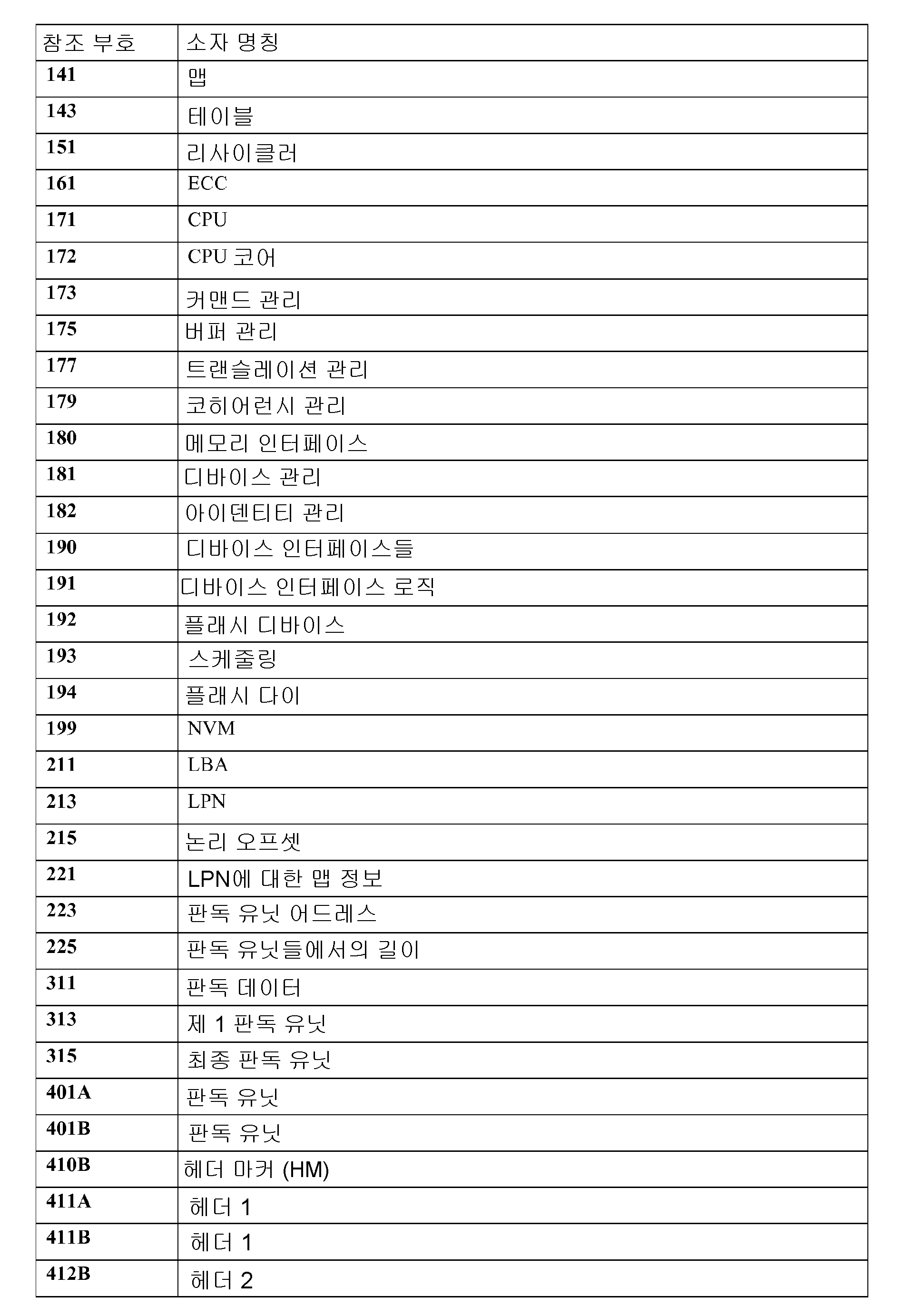 도면들에서 참조 부호들의 리스트
