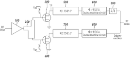 분배기(200)는 비대칭 분배기(uneven divider)로서, 구동 증폭기(100)로부터 출력된 RF 신호를 병렬로 배치된 캐리어 증폭기(300) 및 피킹 증폭기(700)로 각각 분배한다.