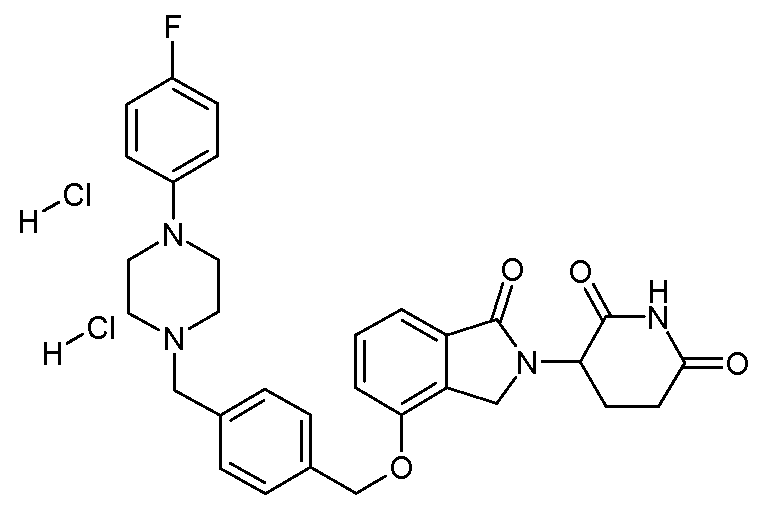 - PTISDXQIJRCLHY-UHFFFAOYSA-N O=C(c1c(C2)c(OCc3ccc(CN(CCc4c5)Cc4ccc5F)cc3)ccc1)N2C(CCC(N1)=O)C1=O Chemical compound O=C(c1c(C2)c(OCc3ccc(CN(CCc4c5)Cc4ccc5F)cc3)ccc1)N2C(CCC(N1)=O)C1=O PTISDXQIJRCLHY-UHFFFAOYSA-N 0.000 description 1