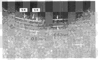 도 5a 및 5b는 표면 근방의 전자 회절 패턴 및 측정 포인트를 나타내는 단면 TEM 영상이다.