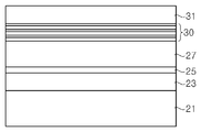 이 분야에서 잘 알려진 바와 같이, p형 AlGaN층(31) 상에 지지기판이 부착되고, 레이저 리프트 오프 공정을 통해 기판(21)이 제거된다. 나아가, 버퍼층(23) 및 AlN층(25) 또한 제거되고 n형 AlGaN층(27)의 표면이 노출될 것이다.As is well known in the art, a supporting substrate is attached on the p-
