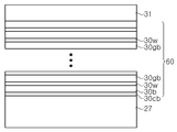 한편, 활성 영역(30)은 장벽층(30b) 및 웰층(30w)이 교대로 적층된 다중 양자우물 구조를 가진다. 활성 영역(30)의 첫째층 및 마지막층은 장벽층(30b) 또는 웰층(30w)일 수 있다.Meanwhile, the