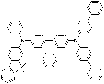 지금까지 유기 EL 소자에 이용되어 온 정공 수송 재료로서는, N,N'-디페닐-N,N'-디(α-나프틸)벤지딘(NPD)이나 여러 가지의 방향족 아민 유도체가 알려져 있었다(예를 들면, 특허 문헌 1 및 특허 문헌 2 참조). NPD는 양호한 정공 수송 능력을 갖고 있지만, 내열성의 지표로 되는 유리 전이점(Tg)이 96℃로 낮고, 고온 조건하에서는 결정화에 의한 소자 특성의 저하가 일어나 버린다(예를 들면, 비특허 문헌 4 참조). 또, 상기 특허 문헌에 기재된 방향족 아민 유도체 중에는, 정공의 이동도가 10-3㎠/Vs 이상으로 우수한 이동도를 가지는 화합물이 알려져 있지만(예를 들면, 특허 문헌 1 및 특허 문헌 2 참조), 전자 저지성이 불충분하기 때문에, 전자의 일부가 발광층을 빠져나가 버려, 발광 효율의 향상을 기대할 수 없는 등, 더 높은 고효율화를 위해, 보다 전자 저지성이 높고, 박막이 보다 안정적이며 내열성이 높은 재료가 요구되고 있었다. 또, 내구성이 높은 방향족 아민 유도체의 보고가 있지만(예를 들면, 특허 문헌 3 참조), 전자 사진 감광체에 이용되는 전하 수송 재료로서 이용한 것으로, 유기 EL 소자로서 이용한 예는 없었다.As hole transport materials that have been used in organic EL devices so far, N,N'-diphenyl-N,N'-di(α-naphthyl)benzidine (NPD) and various aromatic amine derivatives have been known (eg For example, see Patent Document 1 and Patent Document 2). Although NPD has good hole transport ability, the glass transition point (Tg), which is an indicator of heat resistance, is as low as 96°C, and crystallization causes deterioration in device characteristics under high temperature conditions (see, for example, Non-Patent Document 4). ). In addition, among the aromatic amine derivatives described in the above patent documents, compounds having excellent hole mobility of 10 −3 cm 2 /Vs or more are known (see, for example, Patent Document 1 and Patent Document 2), but electron Since some of the electrons pass through the light emitting layer due to insufficient blocking properties, and improvement in luminous efficiency cannot be expected, a material with higher electron blocking properties, a more stable thin film, and high heat resistance is needed for higher efficiency. was being demanded In addition, although aromatic amine derivatives with high durability have been reported (see, for example, Patent Document 3), they have been used as charge transport materials used in electrophotographic photoreceptors and have not been used as organic EL devices.
