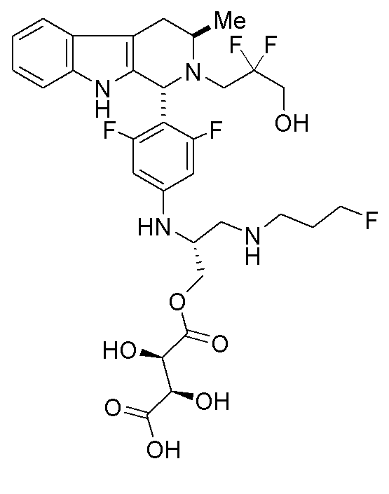 | RU2809220C2 (en) | TARTRATE 3-((1R,3R)-1-(2,6-DIFLUORINE-4-((1-(3- FLUOROPROPYL)AZETIDINE-3-YL)AMINO)PHENYL)-3-METHYL-1,3,4,9-TETRAHYDRO-2H-PYRIDO[3,4-b]INDOLE-2-YL)-2,2-DIFLUOROPROPANE-1-OL, ITS SOLID FORMS, METHOD OF ITS PREPARATION AND THEIR APPLICATION | |