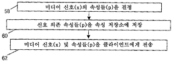 상기 미디어 신호와 함께 속성들의 제공은 상기 클라이언트에 정보를 전송하기 위해 요구되는 대역폭을 확장한다. 본 발명의 제 4 실시예는 여분의 대역폭이 상기 속성들에 대해 필요로 되지 않도록 이러한 문제를 해결하는 것에 관한 것이다.Provision of attributes along with the media signal extends the bandwidth required to transmit information to the client. A fourth embodiment of the present invention is directed to solving this problem so that no extra bandwidth is required for the attributes.