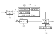 상기 영상표시장치는 수신되는 CVBS 형태의 신호를 디코딩하고 이를 스케일링 변환을 수행하게 되면, RGB 신호는 밝기 신호(Y)와 색차 신호(UV)로 분리되는데, 도시된 도면에서는 RGB to YUV 변환부(110)로 도시되어 있다. When the image display device decodes the received CVBS type signal and performs scaling conversion, the RGB signal is divided into a brightness signal Y and a color difference signal UV. In the drawing, the RGB to YUV converter ( 110).