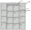본 발명에서 셀(10)의 상호연결은 인쇄회로 패턴(102)이 형성된 백 시트(101)를 통해 이루어진다. 도 8에 모듈(100)을 구성하는 백 시트(101) 상에 형성된 인쇄회로 패턴(102)을 도시하였다. 인쇄회로 패턴(102) 상에서 결합 되는 셀(10)의 위치는 파선으로 나타내고 있다. 도 8에서 B로 표시되어 있는 상호연결의 말단 부분을 제외하면 하나의 셀(10)에 비슷한 크기의 하나의 인쇄회로 패턴(102)이 대응된다. 셀(10)과 마찬가지로 인쇄회로 패턴(102)에도 설명의 편의를 위해 그 좌측 상단에 1부터 16까지의 일련번호가 부여되어 있다. 도 8의 C로 표시된 부분에서 인접한 셀(10)의 상호연결이 이루어진다. 예를 들면 2번 인쇄회로 패턴의 상단에서 1번 셀의 에미터 전극과 2번 셀의 베이스 전극이 연결된다. 그리고 7번 인쇄회로 패턴의 경우에는 그 하단에서 6번 셀의 에미터 전극과 7번 셀의 베이스 전극이 연결된다. 연결 방향이 바뀌는 부분에 위치하는 4번, 5번, 12번 및 13번 인쇄회로 패턴(102)의 경우, 도 8에 도시한 것과 같이 일부 형태의 변화를 통해 대응할 수 있다. 반면에 특허문헌 6에 기재되어 있는 종래기술에서는 모듈 가장자리 쪽으로 인쇄회로 패턴을 확장하고 그 위에 버스 바를 결합함으로써 연결방향을 180°로 전환하고 있다. 즉, 본 발명에서는 확장된 인쇄회로 패턴 및 그 위에 결합 되는 버스 바가 불필요하므로 모듈 효율을 개선할 수 있을 뿐 아니라 버스 바와 관련된 재료비와 공수(工數)도 절감할 수 있게 된다. In the present invention, the interconnection of the