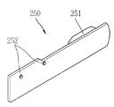 공정을 살펴보면 다음과 같다. 도 5와 도 6에 도시된 바와 같이, 우선 슬라이드 도어(250)가 슬롯을 따라 이동할 수 있도록 슬롯부(230)에 슬라이드 도어(250)를 밀착시킨다. 이 때, 슬라이드 도어(250)의 노브(251)가 슬롯에 삽입되어야 한다. 그리고, 지지 프레임(280)이 슬라이드 도어(250)를 덮도록 슬롯부(230)에 결합시킨다. 이러한 결합은 슬롯부(230)로부터 돌출되는 돌출체에 지지 프레임(280)을 끼움 결합하거나, 지지 프레임(280)을 슬롯부(230)에 열융착함으로써 이루어 질 수 있다.The process is as follows. As shown in FIGS. 5 and 6, first, the