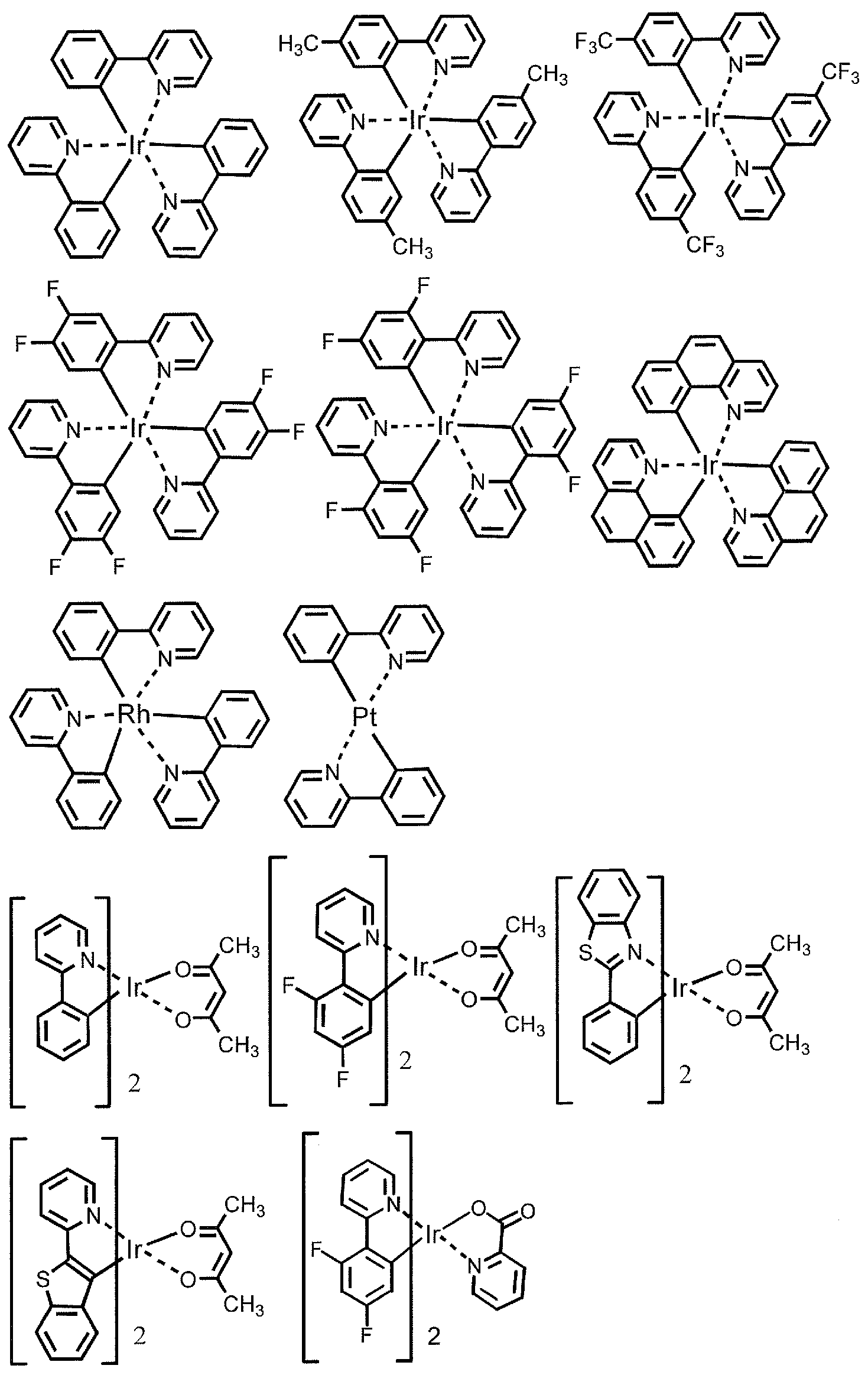 - UEEXRMUCXBPYOV-UHFFFAOYSA-N iridium;2-phenylpyridine Chemical compound [Ir].C1=CC=CC=C1C1=CC=CC=N1.C1=CC=CC=C1C1=CC=CC=N1.C1=CC=CC=C1C1=CC=CC=N1 UEEXRMUCXBPYOV-UHFFFAOYSA-N 0.000 description 14