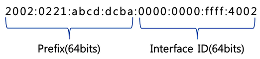 FIG. 2 is a diagram illustrating an exemplary configuration of an IPv6 address based on the IPv6 header data format shown in FIG. 1.