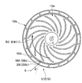 상기 임펠러는 제 1방향(H)을 향하여 회전하고, 상기 복수의 날개는 상기 임펠러의 축방향(X)에 대하여 상기 제 1방향(H)과 반대방향인 제 2방향(I)을 따라 경사를 형성할 수 있다.The impeller rotates in a first direction (H) and the plurality of blades are inclined in a second direction (I) opposite to the first direction (H) with respect to the axial direction (X) of the impeller .