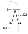 상기 제 1면의 시작점(M) 및 상기 제 2면의 시작점(N)을 연결하는 직선(A)은 상기 임펠러의 축방향(X)에 대하여 5ㅀ이상 85ㅀ이하의 경사를 형성할 수 있다.The straight line A connecting the starting point M of the first surface and the starting point N of the second surface may form an inclination of 5 to 85 에 with respect to the axial direction X of the impeller .