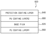 도 5 및 도 6을 참조하면, 플렉시블 디스플레이 윈도우(600)는 베이스 필름(620), 보호 코팅층(640), 제1 폴리우레탄 코팅층(660) 및 제2 폴리우레탄 코팅층(680)을 포함할 수 있다. 한편, 플렉시블 디스플레이 윈도우(600)는 감압 접착층을 매개로 하여 플렉시블 디스플레이 패널에 접착됨으로써 플렉시블 디스플레이를 구성할 수 있다.5 and 6, the