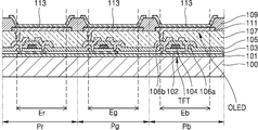 일 실시예에 있어서, 상기 봉지 부재 상에 배치되며, 상기 복수의 제2개구부들을 채우는 복수의 컬러 필터들;을 더 포함할 수 있다.In an embodiment, a plurality of color filters disposed on the encapsulation member and filling the plurality of second openings may be further included.