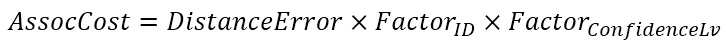 예를 들어, 상기 연관값은, 상기 기준 트랙 박스와 상기 센서 트랙 박스 간 유사도가 높을 수록 작은 값으로 산출될 수 있다.For example, the association value may be calculated as a smaller value as the similarity between the reference track box and the sensor track box increases.