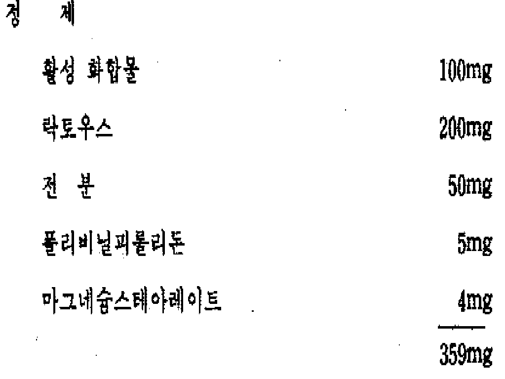 치료시 펀리하게 사용될 수 있는 식(Ⅰ) 화합물의 염은 젖산, 초산, 말산 또는 P-톨루엔설포산과 같은 유기산류의 생리적으로 허용될 수 있는 염과 염산 및 황산과 같은 무기산의 생리적으로 허용될 수 있는 염을 포함한다.Salts of the compound of formula (I) which can be used for treatment upon treatment are physiologically acceptable salts of organic acids such as lactic acid, acetic acid, malic acid or P-toluenesulfonic acid and physiologically acceptable salts of inorganic acids such as hydrochloric acid and sulfuric acid. Salts that may be present.