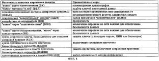 Как и любая система обеспечения безопасности, все известные в настоящее время методы защиты с помощью цифровой подписи в той или иной степени обладают "слабыми местами", так называемой уязвимостью, что делает их потенциальным объектом многочисленных попыток "взлома". Возможные типы подобной уязвимости представлены в таблице на фиг.6.Like any security system, all currently known methods of protection using digital signature to one degree or another have "weaknesses", the so-called vulnerability, which makes them a potential target of numerous attempts to "hack". Possible types of such vulnerabilities are presented in the table in Fig.6.