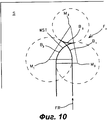 Конкретная система машин в зависимости от ее оснащения может направляться вдоль этого маршрута либо с автоматическим управлением, то есть с помощью автоматической системы рулевого управления, либо с полуавтоматическим или просто ручным управлением при поддержке соответствующего индикаторного устройства, при этом оператор должен стараться выдерживать положение машины на виртуальной линии движения. Обычно такие системы маршрутизации или автоматические системы рулевого управления работают со спутниковыми навигационными системами, например, с помощью приемников системы GPS (Global Positioning System - глобальная система навигации и определения местоположения). Для повышения точности существуют различные способы корректировки, такие как, например, предназначенная для способа GPS дифференциальная система DGPS (в которой приемник GPS кроме спутниковых сигналов использует поправки, генерируемые опорной станцией, расположенной в фиксированном месте с известными координатами). Такая система маршрутизации описана, например, в патентном документе ЕР 0821296 В1. Как было пояснено выше, такой запланированный маршрут, как правило, содержит не только запланированные проходы внутри подлежащей обработке площади, то есть отдельные «рабочие проходы» на поле, но также и проходы разворота для выполнения маневров поворота в областях разворота на краю поля, выполняемые для перехода от одного рабочего прохода к рабочему проходу, который в большинстве случаев расположен непосредственно рядом с предыдущим или проходит параллельно на некотором расстоянии от него.A particular system of machines, depending on its equipment, can be guided along this route either with automatic control, that is, with the help of an automatic steering system, or with semi-automatic or simply manual control with the support of an appropriate indicator device, while the operator must try to maintain the position of the machine on a virtual lines of motion. Typically, such routing systems or automatic steering systems work with satellite navigation systems, for example, using GPS receivers (Global Positioning System - a global navigation and positioning system). To improve accuracy, there are various correction methods, such as, for example, the DGPS differential system designed for the GPS method (in which, in addition to satellite signals, the GPS receiver uses corrections generated by a reference station located in a fixed location with known coordinates). Such a routing system is described, for example, in patent document EP 0821296 B1. As explained above, such a planned route, as a rule, contains not only the planned walkways inside the area to be treated, that is, separate “working walkways” on the field, but also turn turns to perform turn maneuvers in the turn areas at the edge of the field, performed for transition from one working passage to the working passage, which in most cases is located directly next to the previous one or runs parallel to it at a certain distance from it.