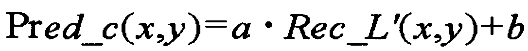Настоящее изобретение относится к внутреннему предсказанию изображения и, более конкретно, к способу и устройству для предсказания сигнала цветности по ранее восстановленному сигналу яркости посредством использования корреляции между сигналом яркости и сигналом цветности.The present invention relates to intra-image prediction, and more particularly, to a method and apparatus for predicting a color signal from a previously reconstructed luminance signal by using the correlation between the luminance signal and the color signal.