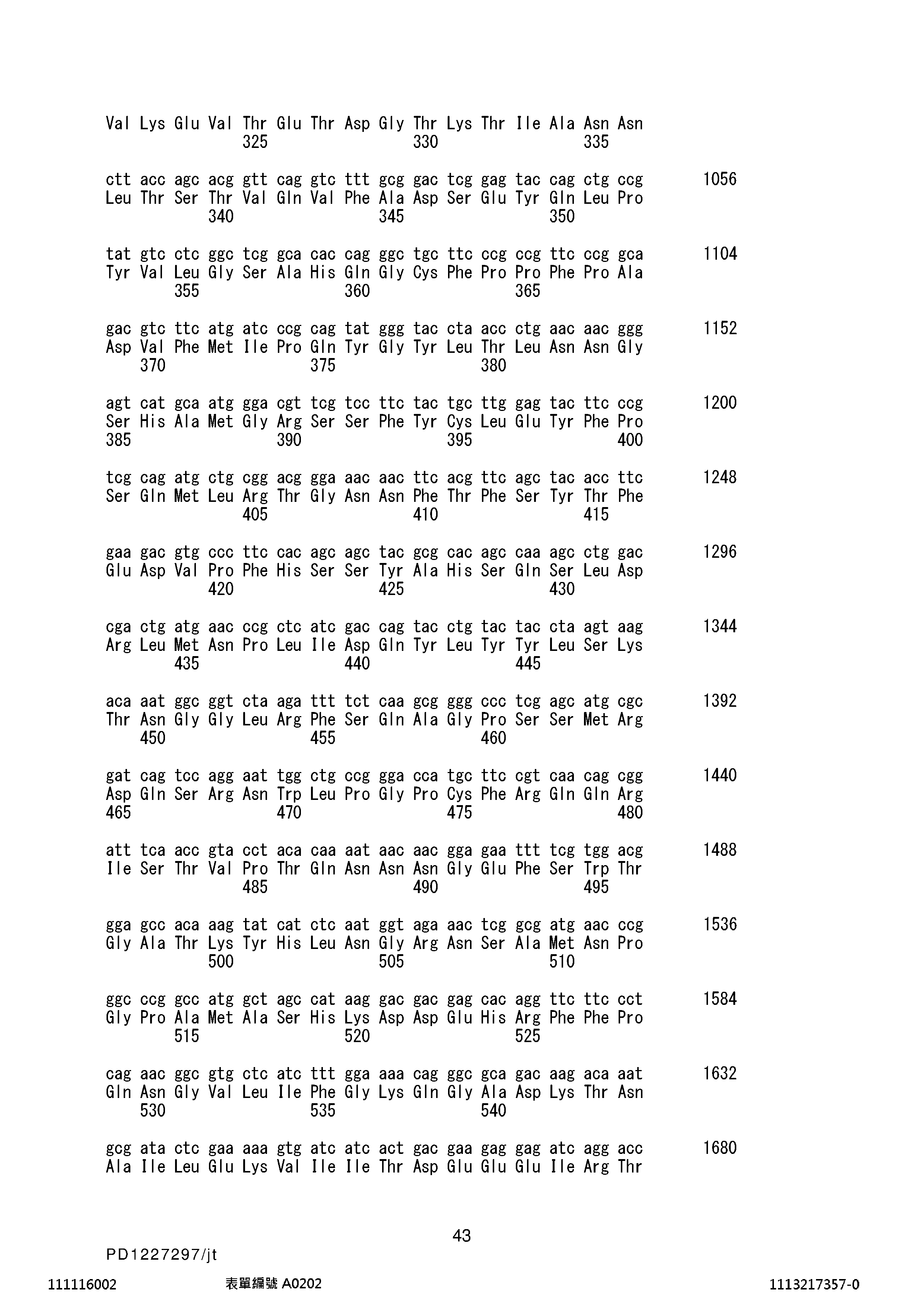 本說明書中列出的所有專利、專利公開案及其它出版物皆藉由引用併入本文。2021年4月27日申請的US臨時專利申請號63/180,372係藉由引用併入本文。本文引用的示於SEQ ID NO的胺基酸及核苷酸序列以及出現在標記為「21-9621PCT_ST25」的所附序列表中的胺基酸及核苷酸序列係藉由引用併入。儘管已經參考特別較佳的具體實施例描述本發明,但應當理解,可於不背離本發明的精神下進行修改。此種修改意圖落入所附申請專利範圍的範疇內。All patents, patent publications, and other publications listed in this specification are hereby incorporated by reference. US Provisional Patent Application No. 63/180,372, filed April 27, 2021, is incorporated herein by reference. The amino acid and nucleotide sequences shown in SEQ ID NO cited herein and the amino acid and nucleotide sequences appearing in the accompanying Sequence Listing labeled "21-9621PCT_ST25" are incorporated by reference. Although the invention has been described with reference to particular preferred embodiments, it should be understood that modifications may be made without departing from the spirit of the invention. Such modifications are intended to fall within the scope of the appended claims.