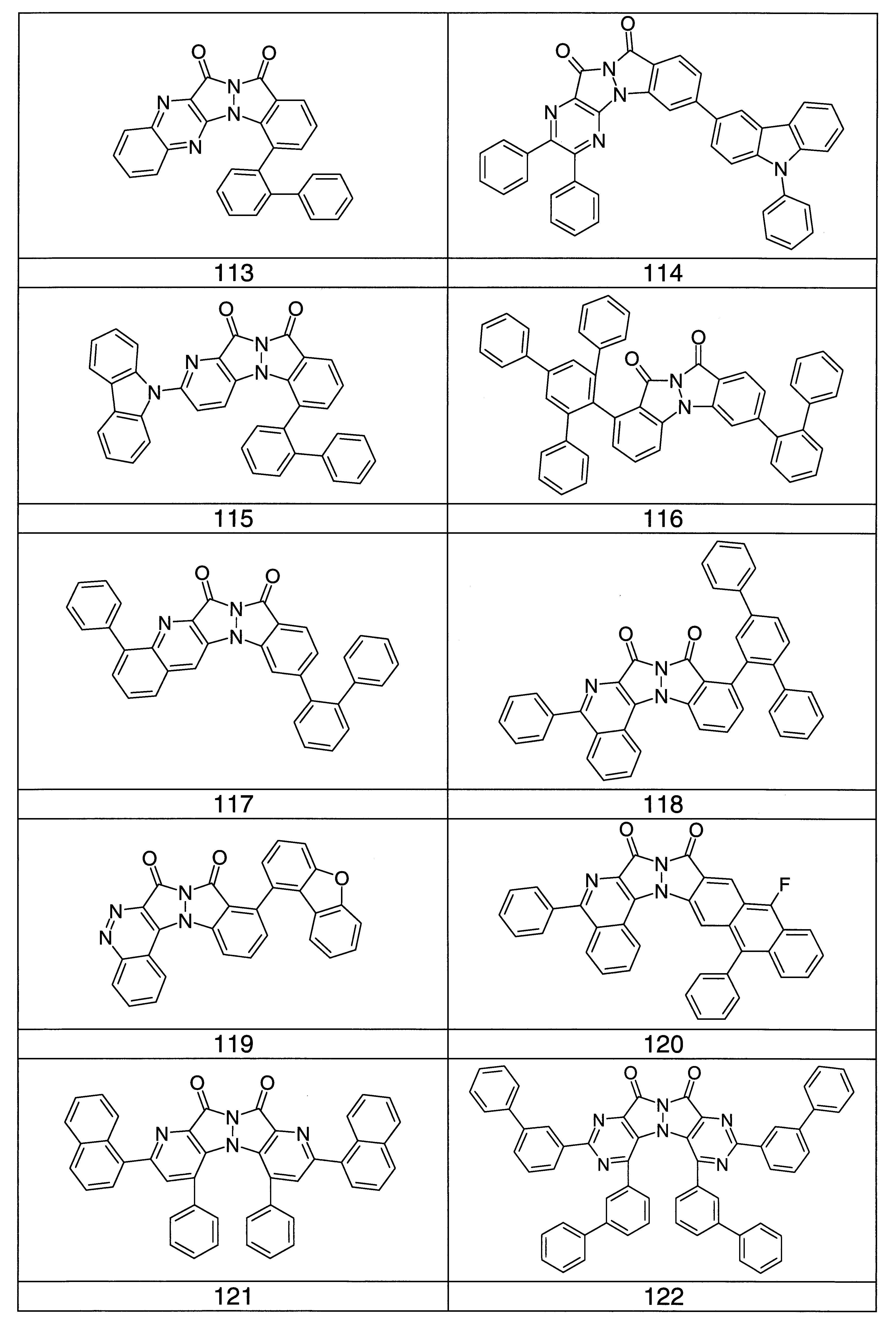 3. 包含式(I)或已於上文及下文敘述之較佳的實施態樣之結構/化合物(作為發光體及/或作為電子傳輸材料)的電子裝置,尤其為有機電致發光裝置具有極佳的效率。在此上下文中,當本發明之式(I)或以上文及下文所敘述之較佳的實施態樣之結構/化合物用於電子裝置時,其造成低的操作電壓。