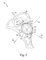 FIG. 5 is an exploded perspective view of the customized patient-specific acetabular surgical instrument of FIG. 2 positioned on a coxal bone;