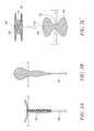 FIG. 2A is a schematic cross sectional representation of the prosthesis 100 in an extended or longitudinally stretched state wherein the coil spring 101 is in a stretched condition, and FIG. 2B illustrates the prosthesis in a relaxed condition in situ after installation gripping both sides of a lumenal passage. FIG. 2C similarly depicts an outer view of a prototype prosthesis 100 in an expanded condition wherein the push rod/push tube is urged distally within the delivery system (not shown) against the distal end of the prosthesis to cause the coil spring to stretch longitudinally. FIG. 2D illustrates the same prosthesis in a relaxed condition after the push rod/push tube is withdrawn. As can be appreciated, the coil spring 101 forces each of the lobes or discs including the exterior mesh with graft material inside to flatten and better contact the wall of the vessel (or chamber, depending on the application) and thereby better achieve hemostasis.