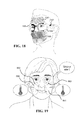 FIG. 15a and FIG. 15b illustrate an embodiment of a clip-on device that includes inward-facing head-mounted cameras pointed at the lower part of the face and the forehead;