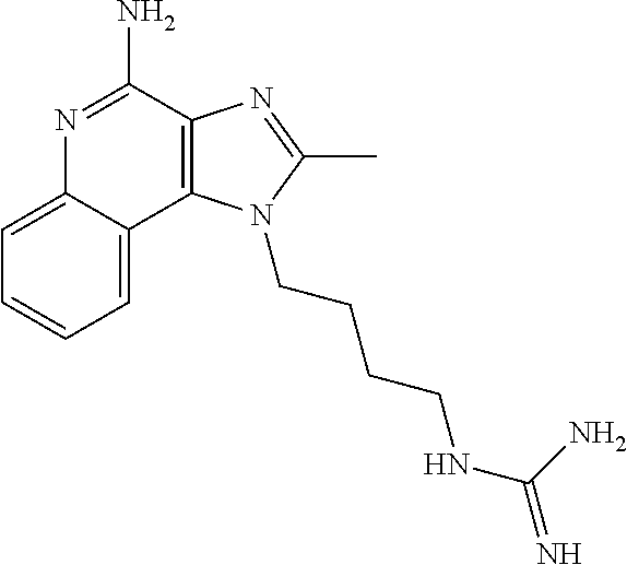 - SQDCTHDLRBKCCR-UHFFFAOYSA-N N=C(N)NCCN1C=NC2=C1C1=NC=CC=C1N=C2N Chemical compound N=C(N)NCCN1C=NC2=C1C1=NC=CC=C1N=C2N SQDCTHDLRBKCCR-UHFFFAOYSA-N 0.000 description 1