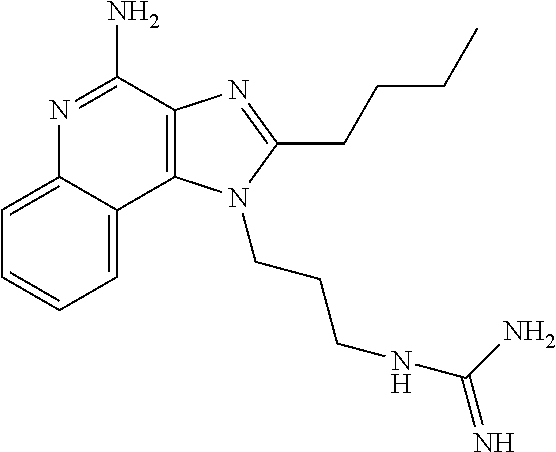 - UCMQEDQPBYMEOG-UHFFFAOYSA-N CCCCC1=NC2=C(C3=CC=CC=C3N=C2N)N1CCOCCNC(=N)N Chemical compound CCCCC1=NC2=C(C3=CC=CC=C3N=C2N)N1CCOCCNC(=N)N UCMQEDQPBYMEOG-UHFFFAOYSA-N 0.000 description 1