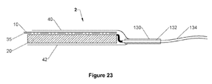 The compressible material layer 20 (e.g., FIG. 13) may be a single layer or may be a stack of materials that includes a layer of foam. This stack could include foam layers of different densities, different accommodation properties, different stiffness or different polymers. Additionally, the stack of materials can include other materials such as woven or non-woven fabrics or films, to achieve other characteristics such as lateral stiffness or durability and strength. The term compressible material layer 20 therefore refers generally to single layers of foam as well as multilayered stacks that include one or more layers of foam and may include other materials. Also, the layer of foam may alternatively be a layer of compressible material as described above.