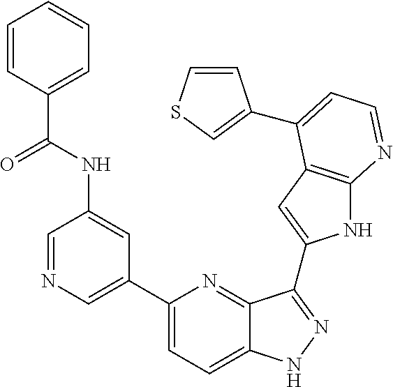 - HCHNLRBPOTUFQL-UHFFFAOYSA-N O=C(NC1=CC(C2=CC=C3NN=C(C4=CC5=C(N=CC=C5C5=CC=C(F)C=C5)N4)C3=N2)=CN=C1)C1=CC=CC=C1 Chemical compound O=C(NC1=CC(C2=CC=C3NN=C(C4=CC5=C(N=CC=C5C5=CC=C(F)C=C5)N4)C3=N2)=CN=C1)C1=CC=CC=C1 HCHNLRBPOTUFQL-UHFFFAOYSA-N 0.000 description 3