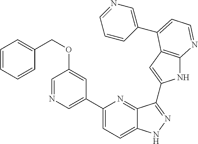 - CMVRNJIMNIKIAU-UHFFFAOYSA-N C1=CC(C2=CC=C3NN=C(C4=CC5=C(N=CC=C5)N4)C3=N2)=CN=C1 Chemical compound C1=CC(C2=CC=C3NN=C(C4=CC5=C(N=CC=C5)N4)C3=N2)=CN=C1 CMVRNJIMNIKIAU-UHFFFAOYSA-N 0.000 description 3