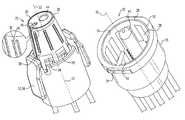 As in other embodiments described herein, in the embodiment shown in FIGS. 6A-B, a plurality of electrically-conductive male-connector terminals 36 a are coupled to mating surface 34 of male-connector body 26 a. For example, as shown in the figure, the male-connector terminals may be attached to one or more PCBs 38 on the mating surface. As in other embodiments, the male-connector terminals are coupled to the mating surface in a longitudinal and circumferential arrangement. In other words, the terminals are arranged in an arrangement that is both longitudinal and circumferential. For example, as shown in FIGS. 6A-B, the terminals may be arranged in a plurality of longitudinally-arranged circumferential “rings.” Such an arrangement effectively covers a large portion of the mating surface, such that male connector 20 may comprise a relatively large number of terminals.