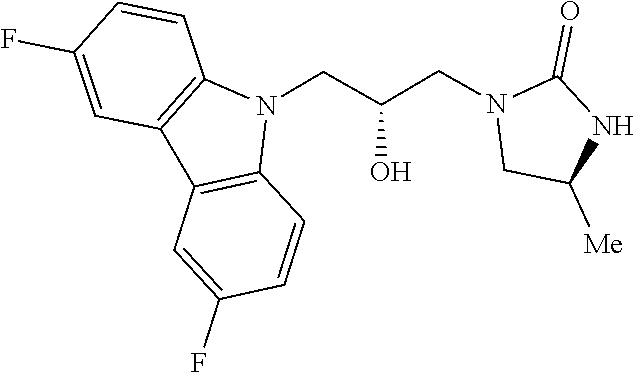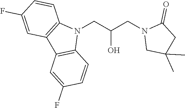 - 2-(3-(3,6-difluoro-9H-carbazol-9-yl)-2-hydroxypropyl)-2-azabicyclo[2.2.1]heptan-3-one; 1-(3-(3,6-difluoro-9H-carbazol-9-yl)-2-hydroxypropyl)imidazolidin-2-one;