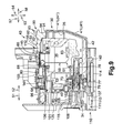 As illustrated in FIGS. 3A and 3B and FIGS. 4A and 4B, the front cover 32 is formed like a box that has side surfaces 143 and 144, which extend from the front surface 140 in the backward direction 58 and are mutually spaced apart in the right direction 55 and left direction 56 and also has the upper surface 141 and lower surface 142, which extend from the front surface 140 in the backward direction 58 and are mutually spaced apart in the downward direction 53 and upward direction 54. The front cover 32 has an opening facing in the backward direction 58. The internal frame 35 is inserted into the front cover 32 through the opening. That is, the front cover 32 covers a front, of the internal frame 35, that is not covered by the rear cover 31.