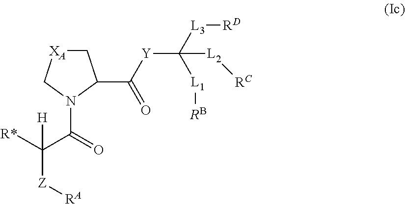 the compounds having X═—CH2CH2CH2—, Y═—O—, Z=a bond, R*=—CH3, —CH2CH3, —CH(CH3)2, —CH(CH3)CH2CH3, -cyclo-C5H9, -cyclo-C6H11, -Ph, or —CH2Ph, RA=-Ph, L1-RB═—H, L2-RC=