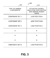 FIG. 3 is a table that illustrates an example of information that may be stored in memory, and that be retrieved and used by an actuator to move a lens to a position that uses a minimum amount of power, for example, when power is being supplied to the actuator of a camera system but the camera system is not being used for imaging.