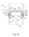 - FIG. 8 depicts a schematic view of the gastrointestinal tract of FIG. 7 during another step of the surgical procedure of FIG. 7 , showing the anvil of FIG. 3 positioned in the upper portion of the gastrointestinal tract and the stapling head assembly of FIG. 4 positioned in the lower portion of the gastrointestinal tract, with the anvil and the stapling head assembly and adjacent regions of the gastrointestinal tract shown in cross-section;